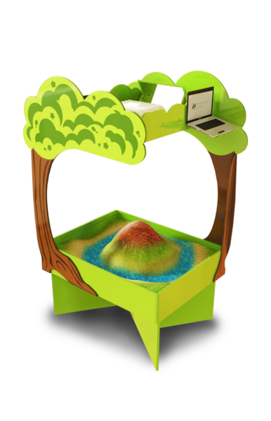 Интерактивная песочница Полянка на колесиках состоит из резервуара с песком, компъютера, проектора, датчика глубины. Это уже не просто песочница, это рельефная интерактивная платформа с огромными возможностями для обучения и игры.