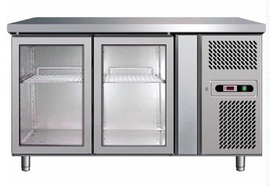Стол холодильный G-GN2100TNG с двумя стеклянными дверьми. Предназначен для хранения продуктов питания. Изготовлен из нержавеющей стали AISI 304. Электронное управление. Вентилируемое охлаждение. Автоматическое испарение конденсата.