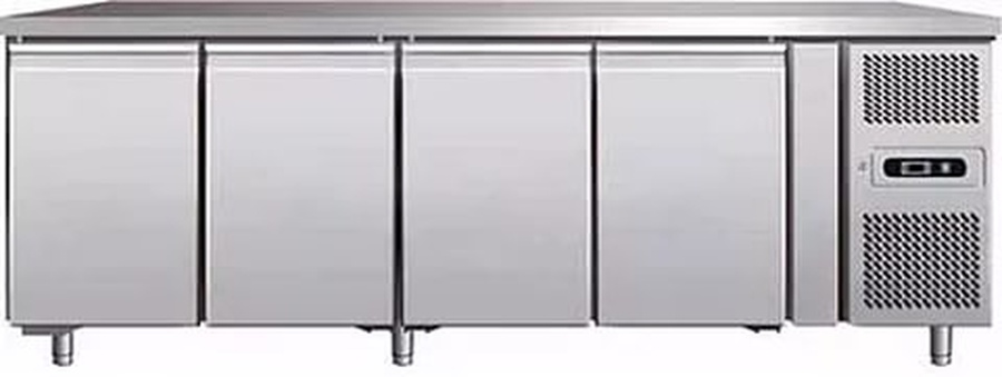Стол холодильный FORCAR G-GN4100TN с четырьмя дверьми. Предназначен для хранения продуктов питания. Изготовлен из нержавеющей стали AISI 304. Электронное управление. Вентилируемое охлаждение. Автоматическое испарение конденсата.