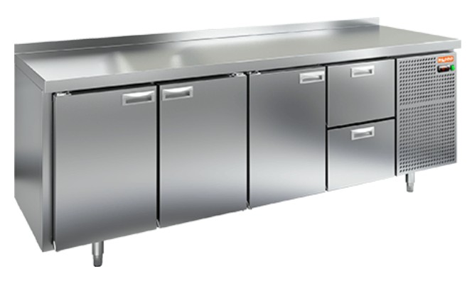 Стол охлаждаемый HICOLD GN 1112/TN с боковым расположением агрегата. Электронная панель управления, размер полки: 530х325 мм (GN 1/1). Регулируемые по высоте ножки, автоматические доводчики дверей с фиксатором открытого положения, легкозаменяемые магнитные уплотнители. Корпус и столешница выполнены из нержавеющей стали.