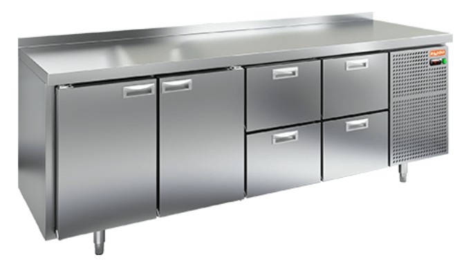 Стол охлаждаемый Hicold GN 1122/TN с боковым расположением агрегата. Электронная панель управления. Размер полки: 530х325 мм (GN 1/1). Регулируемые по высоте ножки, автоматические доводчики дверей с фиксатором открытого положения, легкозаменяемые магнитные уплотнители. Корпус и столешница выполнены из нержавеющей стали.