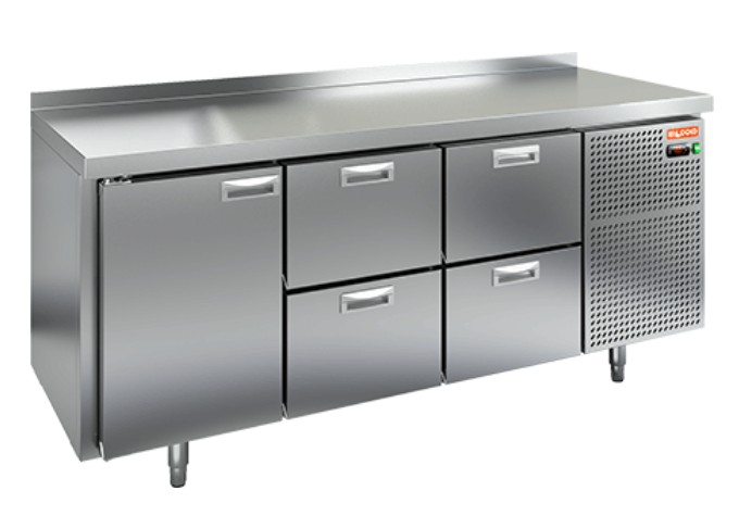Стол охлаждаемый HICOLD GN 122/TN с боковым расположением агрегата. Электронная панель управления, толщина теплоизоляции 50 мм. Размер полки: 530х325 мм (GN 1/1). Регулируемые по высоте ножки, автоматические доводчики дверей с фиксатором открытого положения, легкозаменяемые магнитные уплотнители. Корпус и столешница выполнены из нержавеющей стали.