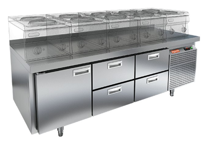 GN 122/TN LT стол охл. под тепловое оборуд.(-2+10), 375л, 1 дверь 4 ящика, динамическое охлаждение, автоматическая оттайка, электронная панель управления, 1835х700х675мм, 0,46кВт, 220В.