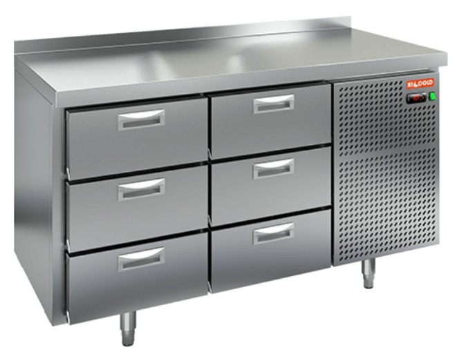 Стол холодильный HICOLD GN 1113/TN с боковым расположением агрегата. Электронная панель управления, вентилятор увеличенной мощности. Регулируемые по высоте ножки, легкозаменяемые магнитные уплотнители. Материал корпуса и столешницы из нержавеющей стали.