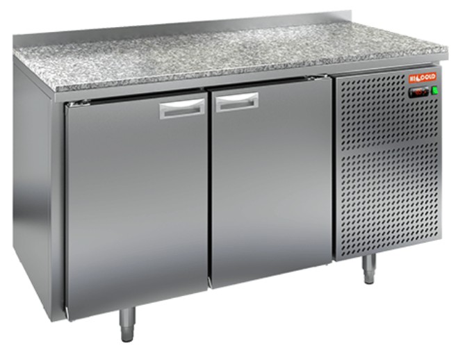 Стол холодильный HICOLD SN 11/TN с каменной столешницей и боковым расположением агрегата. Электронная панель управления, размер полки: 430х325 мм, толщина теплоизоляции: 50 мм. Регулируемые по высоте ножки, автоматические доводчики дверей с фиксатором открытого положения, легкозаменяемые магнитные уплотнители. Корпус выполнен из нержавеющей стали, столешница из гранита.