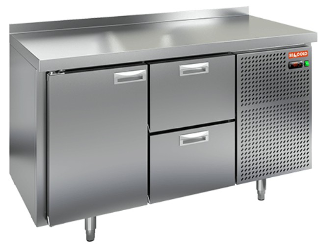 Стол охлаждаемый HICOLD SN 12/TN с боковым расположением агрегата. Электронная панель управления, размер полки: 430х325 мм. Регулируемые по высоте ножки, автоматические доводчики двери с фиксатором открытого положения, легкозаменяемые магнитные уплотнители. Корпус и столешница выполнены из нержавеющей стали.
