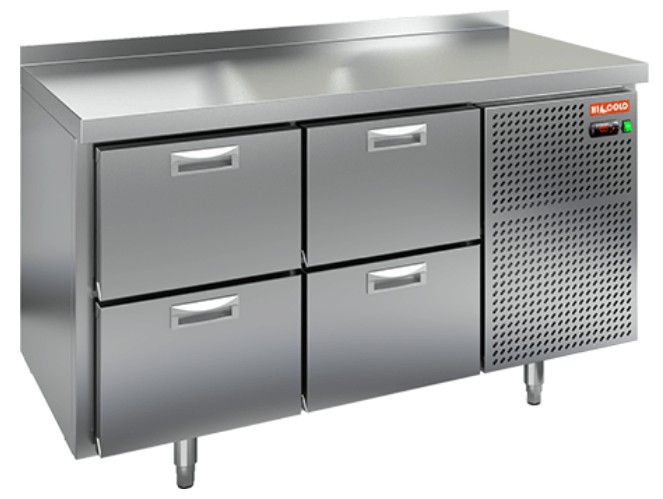 Стол холодильный, из нержавеющей стали марки AISI 304, с бортом (5 см), 4 выдвижных ящика,