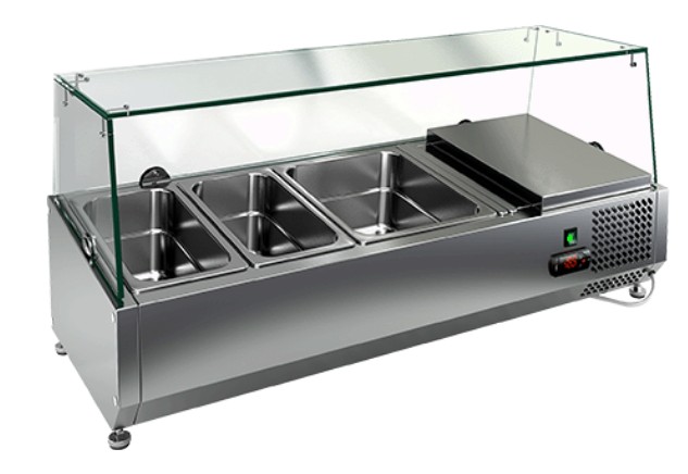 Настольная охлаждаемая витрина VRTG 1390 (VRTG 2) подходит как для хранения и охлаждения, так и для демонстрации различных блюд. Вместимость 6 x GN1/3. Корпус выполнен из нержавеющей стали.