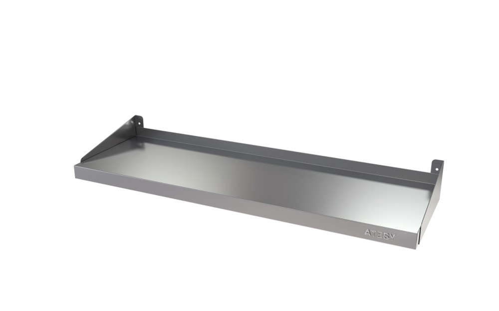 Полка настенная кухонная АТЕСИ ПНК-С-500.400-02 серии «стандарт» предназначена для хранения и временной расстановки посуды, кухонного инвентаря, размещения различных видов нескоропортящихся продуктов, полуфабрикатов и специй. Материал полки – нержавеющая сталь AISI 430. Края полки имеют подгибы для предотвращения травматизма персонала. С пристенной стороны полка имеет бортик высотой 30 мм. Конструкция полки позволяет установить боковые кронштейны как сверху, так и снизу. Размер полки 500х400 мм.