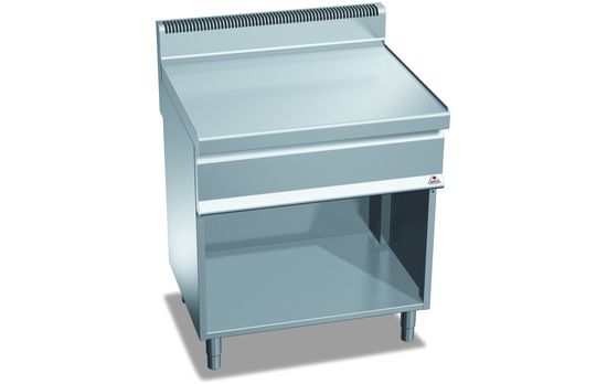 Рабочая поверхность на полуоткрытом стенде (открытом со стороны оператора) изготовлен из нержавеющей стали AISI 304