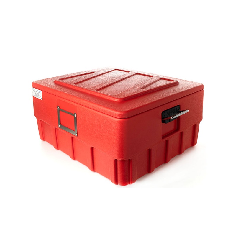 Изотермический контейнер H-40L предназначен для поддержания в течение длительного времени готовых блюд и напитков в разогретом и охлажденном виде и их доставки до индивидуального пользователя в офисы, школы, банковские учреждения, кейтеринговые компании, на предприятия общественного питания и фабрики-кухни. Цельнолитый двухслойный корпус выполнен из полиэтилена с инжекцией пенополиуретана высокой плотности.
