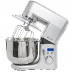 10 л - емкость дежи, дежа съемная, 6 скоростей + пульс, ЖК-дисплей, откидная головка, 3 мешалки (двойной крюк, битер, венчик), корпус - алюминий, 220В, 1,5кВт, 11,7кг