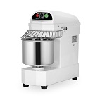 10л. объем дежи, 1 скорость, фиксированная дежа нержавеющая сталь, крюк., разовый замес - 4 кг муки, примерно 7 кг теста, скорость вращения крюка - 106 об/мин., скорость вращения дежи 15 об/мин., 0,65кВт, 220B