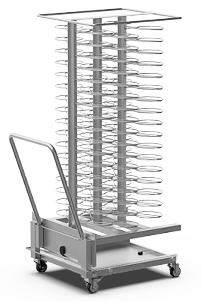 Тележка для тарелок для печи CHEFLUX XV 4093.Загрузка - 102 тарелки. Диаметр тарелок от 210 до 310мм. Изготовлена из нержавеющей стали.