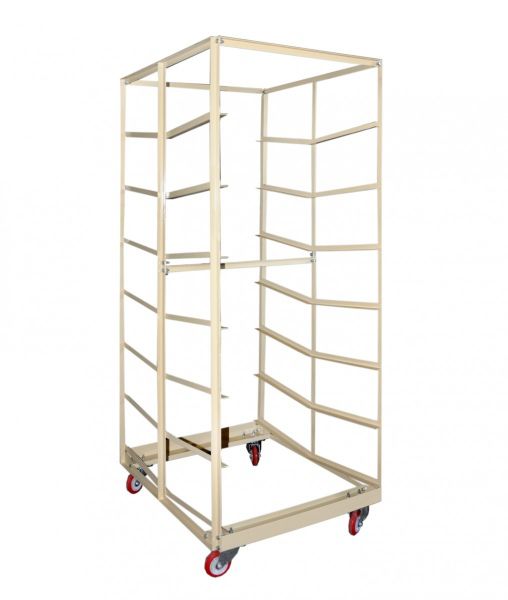 Вагонетка лотковая ВЛ-14 (разборная, в упаковке). Рассчитана на 14 стандартных хлебных лотков Л-14. Поставляется в разобраном виде. Имеет четыре поворотных колеса.