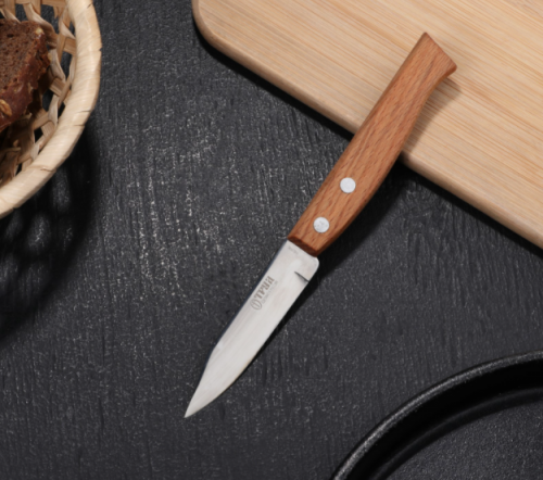 Нож для резки овощей с деревянной ручкой рекомендуется для столовых школ и детских садов. Прослужит долго и сохранит свой первоначальный вид. Деревянная ручка выполнена с изгибами для пальцев, что удобно при захвате ножа. Лезвие из нержавеющей стали не поддастся коррозии и надолго сохранит острие после заточки.