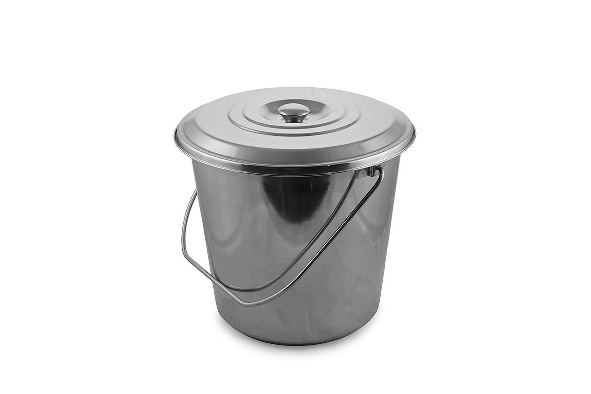 Ведро с крышкой, из нержавеющей стали не поддается коррозии и обладает высокой прочностью. Может использоваться в основном на кухне для кипячения, переноски и хранения воды, напитков продуктов. Рекомендуется для столовых школ и ДОУ.