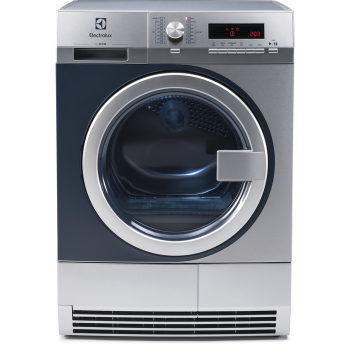 Машина сушильная полупрофессиональная TE1120 ELECTROLUX предназначена для использования в ресторанах, салонах красоты, небольших отелях, фитнес-залах. Электронная панель управления. ЖК-дисплей. 16 программ сушки. Предотвращение пересушивания белья за счет RMC (контроль остаточной влажности). Подсветка барабана. Профессиональная конструкция: опорные ролики барабана, система привода, профессиональные компоненты. Корпус, верхняя и передняя панели изготовлены из нержавеющей стали. Левое/правое расположение двери (возможность перевешивания петель). Машина не требует подключения к вентиляции благодаря наличию встроенного конденсирующего блока. Мощность нагрева 2,2 кВт. Электрическая мощность 2,6 кВт. Среднее время сушки (программа Хлопок 60°С, полная загрузка) - 129 мин.