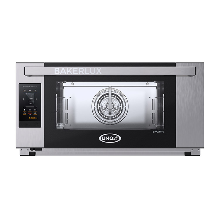 Конвекционная печь для выпечки, с пароувлажнением, 3 уровня 600х400, расстояние между уровнями 75мм. Сенсорная панель управления TOUCH с тачскрином, ЖК-дисплей (диагональ 2,4"), 99 ячеек для программ, 9 шагов выпекания, 2 скорости вентилятора. Регулируемое пароувлажнение (шаг 20%), Температурный режим: от 50 до 260 °C. Дверь открывается вниз. USB-порт.