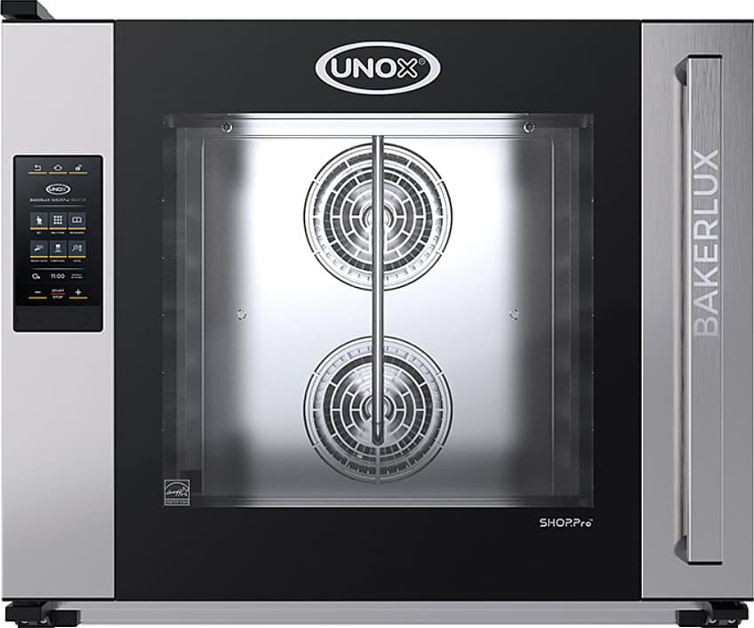 Конвекционная печь для выпечки, с пароувлажнением, 6 уровней 600х400, расстояние 75мм, сенсорная панель управления MASTER с тачскрином, ЖК-дисплей (диагональ 5"), 896 программ, 9 шагов выпекания, Multi.Time (поуровневый контроль времени готовки с возможностью установки до 10 таймеров), автоматические программы выпекания CHEFUNOX, 2 скорости вентилятора, регулируемое пароувлажнение (шаг 20%), темп. 50-260 °C, дверь с автоматическим замком, USB-порт.