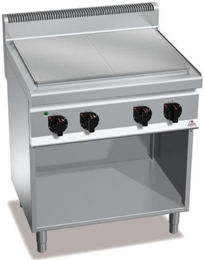 Плита электрическая E7TPM настольная со сплошной поверхностью, 4 зоны нагрева. Рабочая поверхность и фронтальные панели из нержавеющей стали AISI 304. Поверхность из специальной стали большой толщины с 4 независимыми варочными зонами. Разогрев осуществляется спиральными ТЭНами, закрепленными под пластиной и включаемыми с помощью регуляторов энергии. Электрический индикатор функционирования. Регулируемые ножки (мобильная версия).