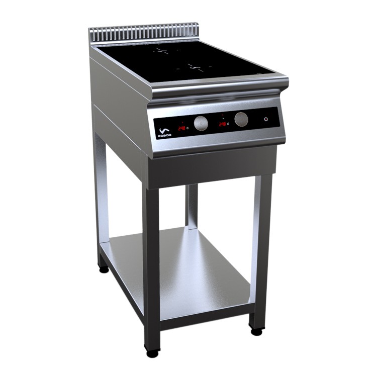 Индукционная плита на открытой подставке Кобор I7-2S предназначена для приготовления различных блюд в наплитной посуде на предприятиях общественного питания и торговли.На полке под плитой можно разместить кастрюли и прочие габаритные кухонные принадлежности.