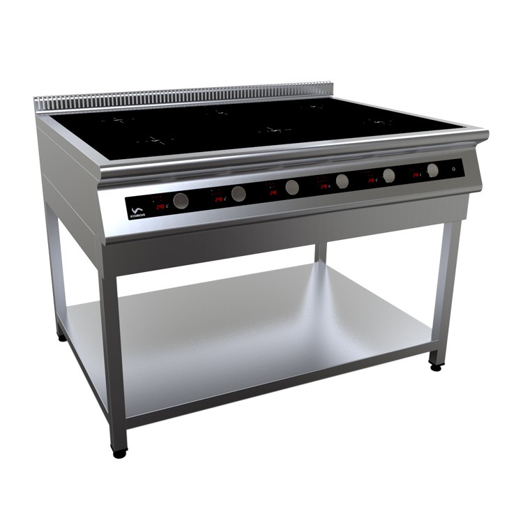 Индукционная плита на открытой подставке Кобор I9-6S предназначена для приготовления различных блюд в наплитной посуде на предприятиях общественного питания и торговли.Автономно управляемые поверхности позволяют одновременно готовить до 6 блюд. На полке под плитой можно разместить кастрюли и прочие габаритные кухонные принадлежности. Благодаря современному элегантному дизайну – является не только незаменимой помощницей на кухне, но и ее стильным украшением.