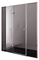монтаж - напольный, монтаж - на поддон, монтаж - установка в нишу; прозрачное стекло; распашная конструкция дверей; хром