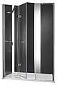 монтаж - напольный, монтаж - на поддон, монтаж - установка в нишу; прозрачное стекло; складная конструкция дверей; хром
