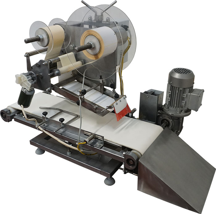 Машина предназначена для нанесения самоклеющихся этикеток на плоские крышки тары круглой или прямоугольной формы, а также для этикетирования плоских поверхностей иных объектов. Конструктивно этикетировочный автомат представляет собой единый несущий каркас, на котором закреплены ленточный транспортер, подающий заполненную продуктом тару, и цилиндрическая стойка с установленным на ней автоматическим аппликатором самоклеющихся этикеток с блоком управления. Легко перенастраивается под размеры этикетируемой тары и под размеры этикеток.