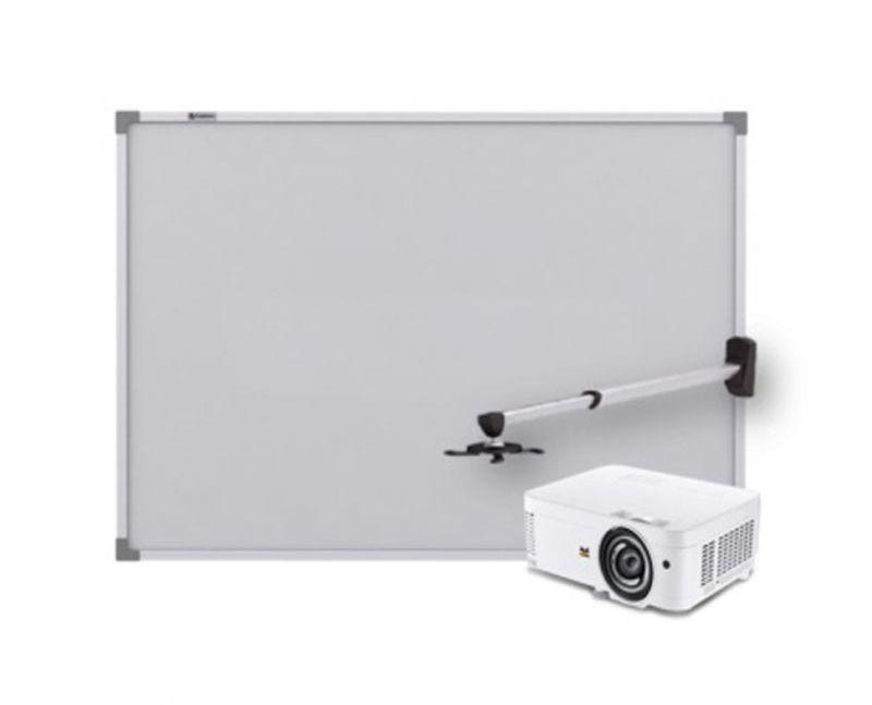 Ультракороткофокусный проектор с разрешением 1280x800 крепится вплотную к стене над доской. Премиальный комплект используют в детских комнатах и садах.