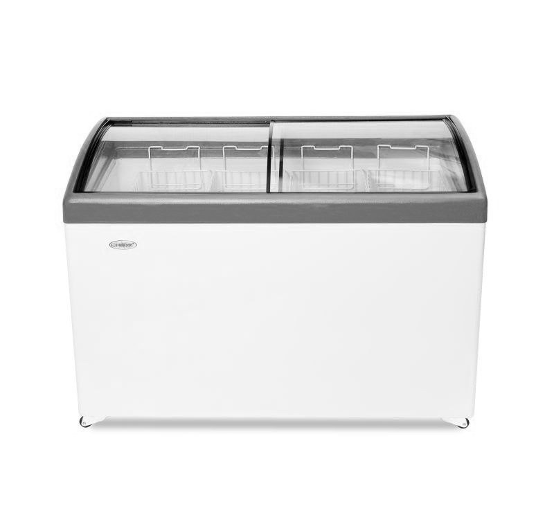 Морозильный ларь Снеж МЛГ 400 предназначен для демонстрации и хранения продуктов, полуфабрикатов и мороженого на предприятиях торговли и общественного питания. - Оборудование оснащено гнутым закаленным стеклом, которое при сильном ударе крошится на мелкие осколки, не повреждая ни человека, ни продукты. - На внутреннюю поверхность стекла нанесено специальное тончайшее покрытие, не позволяющее тепловым лучам проникать внутрь холодильной ванны ларя - Цвет серый. Опции - При необходимости морозильный ларь может быть оснащен врезным или реечным замком, позволяющим исключить несанкционированный доступ к товару.