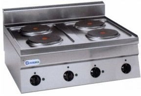 Настольная электрическая плита с круглыми конфорками диаметром 180 мм. Наличие индикаторов работы конфорок. Углубление против перелива жидкости. Конфорки с ограничителем температуры для экономии электроэнергии.