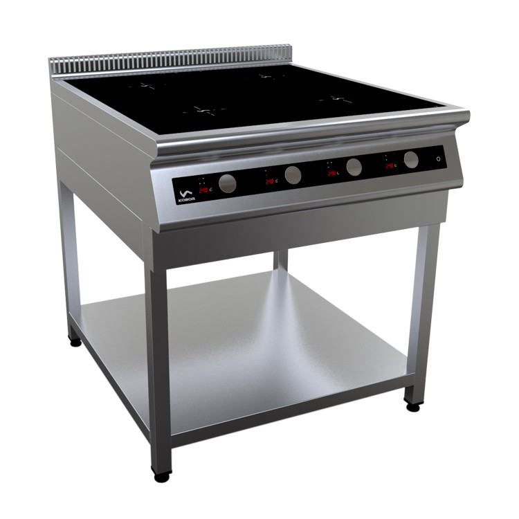 Индукционная плита на открытой подставке Кобор I9-4S предназначена для приготовления различных блюд в наплитной посуде на предприятиях общественного питания и торговли.Автономно управляемые поверхности позволяют одновременно готовить до 4 блюд. На полке под плитой можно разместить кастрюли и прочие габаритные кухонные принадлежности. Благодаря современному элегантному дизайну – является не только незаменимой помощницей на кухне, но и ее стильным украшением.